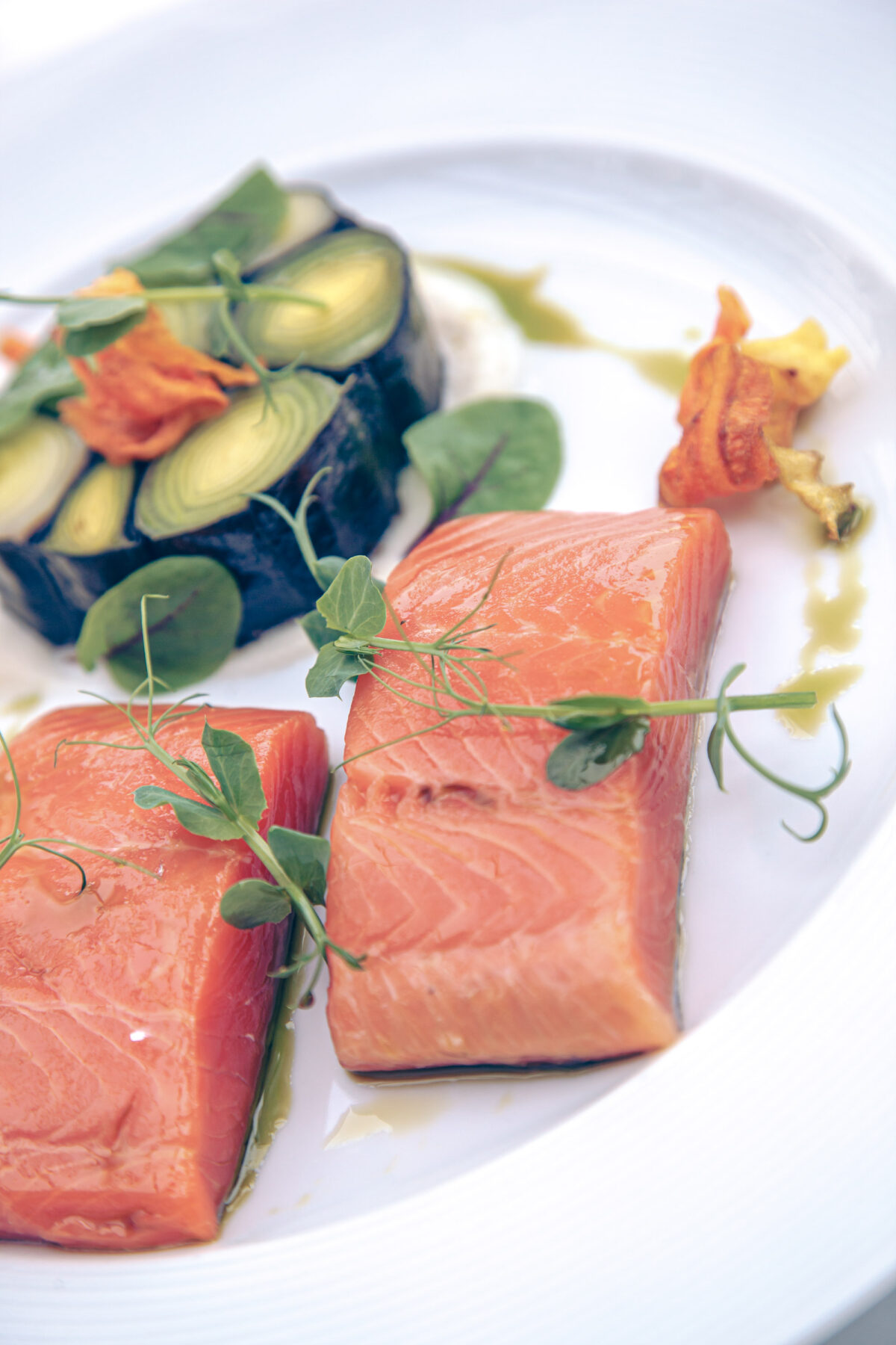 Sivoň na masle, pyré z bielej reďkovky, pór, riasa nori